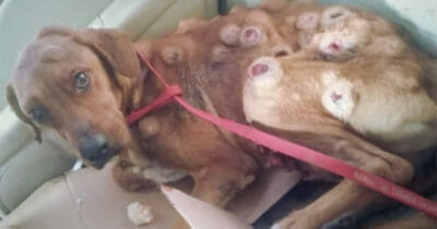Mujer le da su chaqueta a su perro para mantenerlo caliente mientras él espera afuera