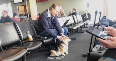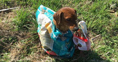 Una pareja encuentra un perro atrapado en una bolsa a un lado del camino