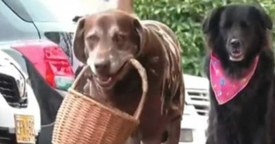 Eros, el labrador chocolate que reparte domicilios con una canasta – para ayudar a los vecinos en la cuarentena